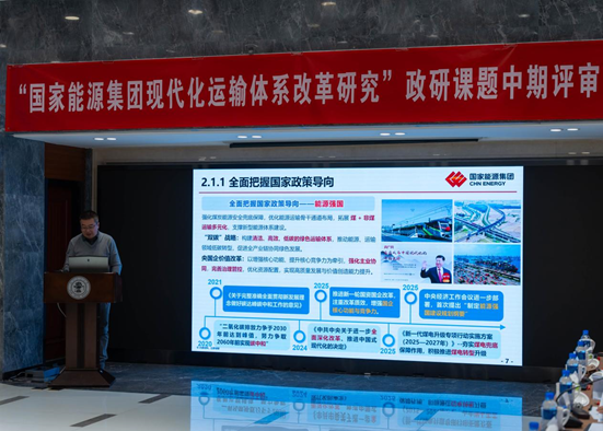 会上,课题组围绕国家能源集团现代化运输体系改革的总体目标、研究框架与阶段性成果进行了系统汇报。研究紧扣国家重大战略部署,立足集团运输产业高质量发展需求,聚焦运输体系结构优化、组织协同、智慧化转型及体制机制创新等关键问题,形成了具有较强针对性和可操作性的阶段性研究成果。